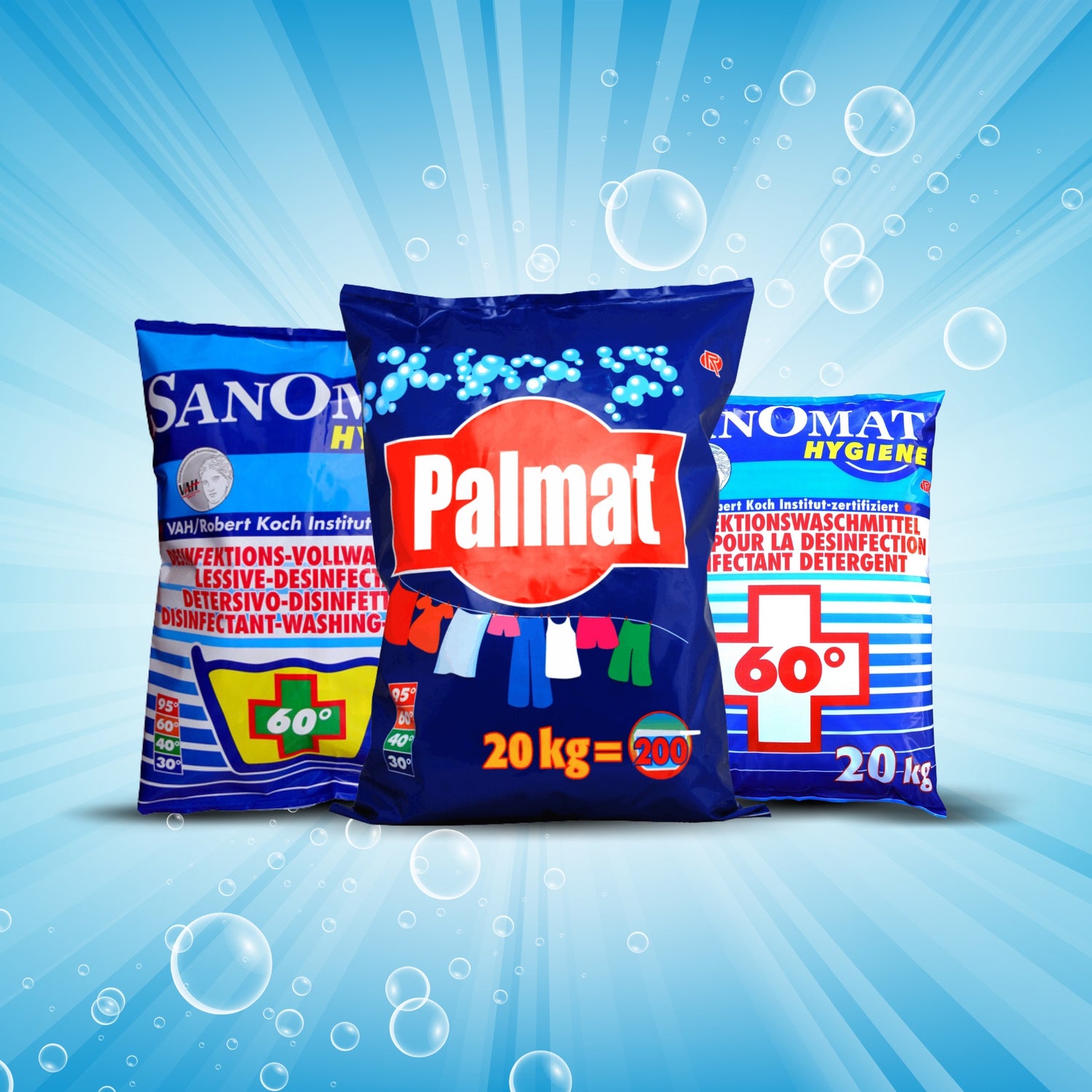 Rösch Sanomat dezinfekční prací prostředek je ideální pro hygienicky citlivé oblasti – například v pečovatelských zařízeních nebo zdravotnických provozech. Kombinuje prací a dezinfekční výkon v jednom kroku a spolehlivě působí proti bakteriím a choroboplodným zárodkům. Palmat univerzální prací prostředek je všestranně použitelný a čistí i silně znečištěné prádlo do hloubky vláken, aniž by poškodil barvy nebo látky. Danny Lemon Power mycí prostředek na nádobí zase přesvědčuje silnou schopností rozpouštět tuky a příjemnou vůní – ideální pro kuchyně, gastronomii a velké domácnosti.