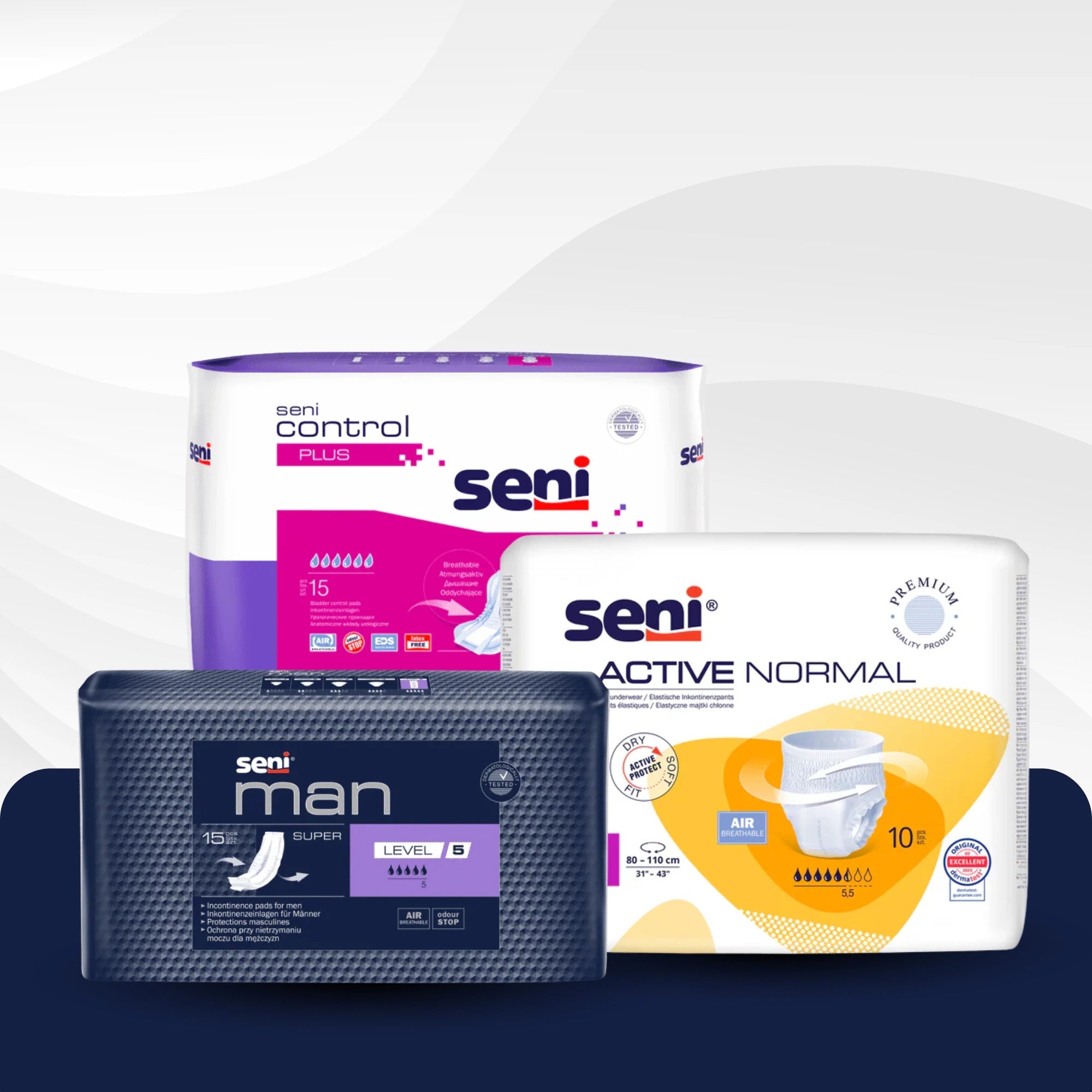 Seni vyvinula širokou škálu produktů, které jsou speciálně přizpůsobeny potřebám lidí s inkontinencí a požadavkům pečovatelů.